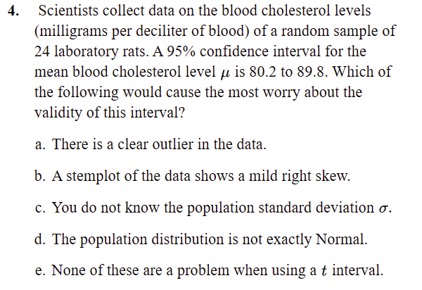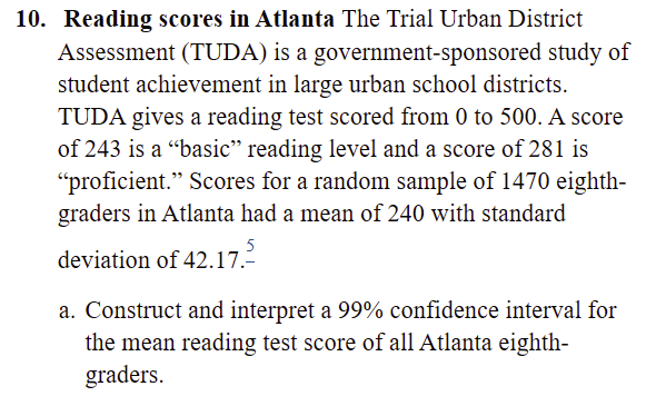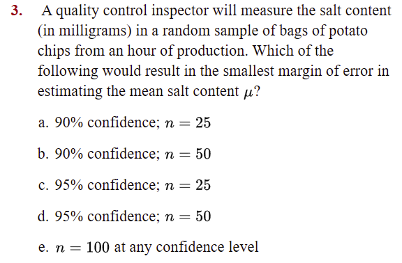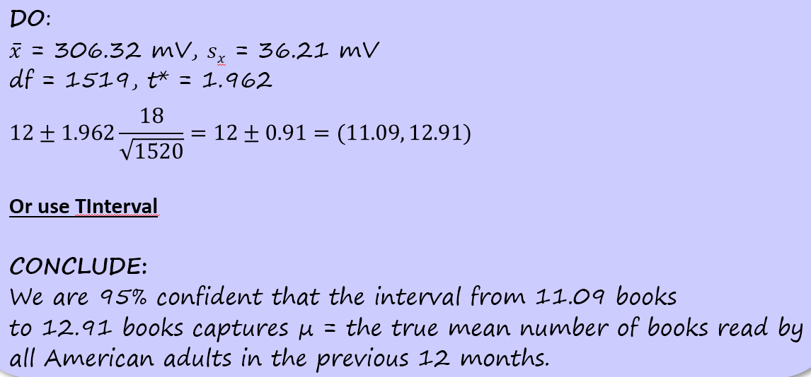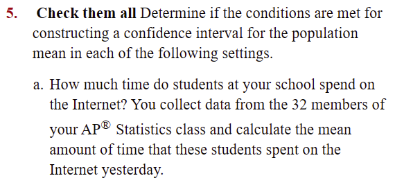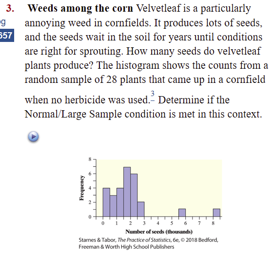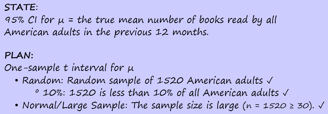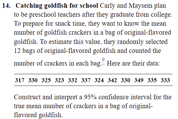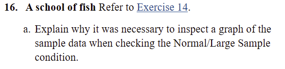 Note: If the sample size is not large and the population is not known to be normal, you have to draw a dotplot to check the Normal/Large Sample condition (example below)