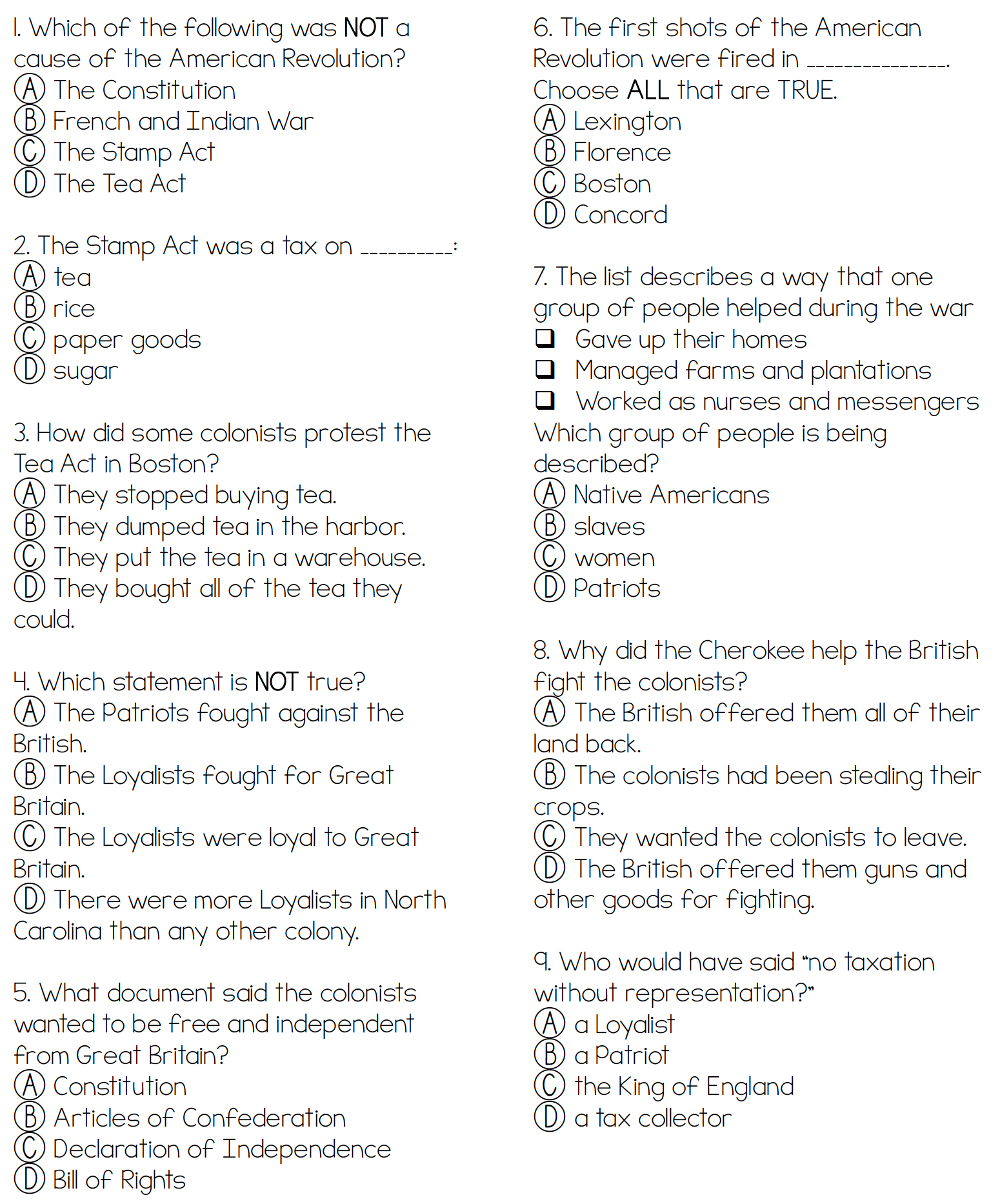American Revolution Test