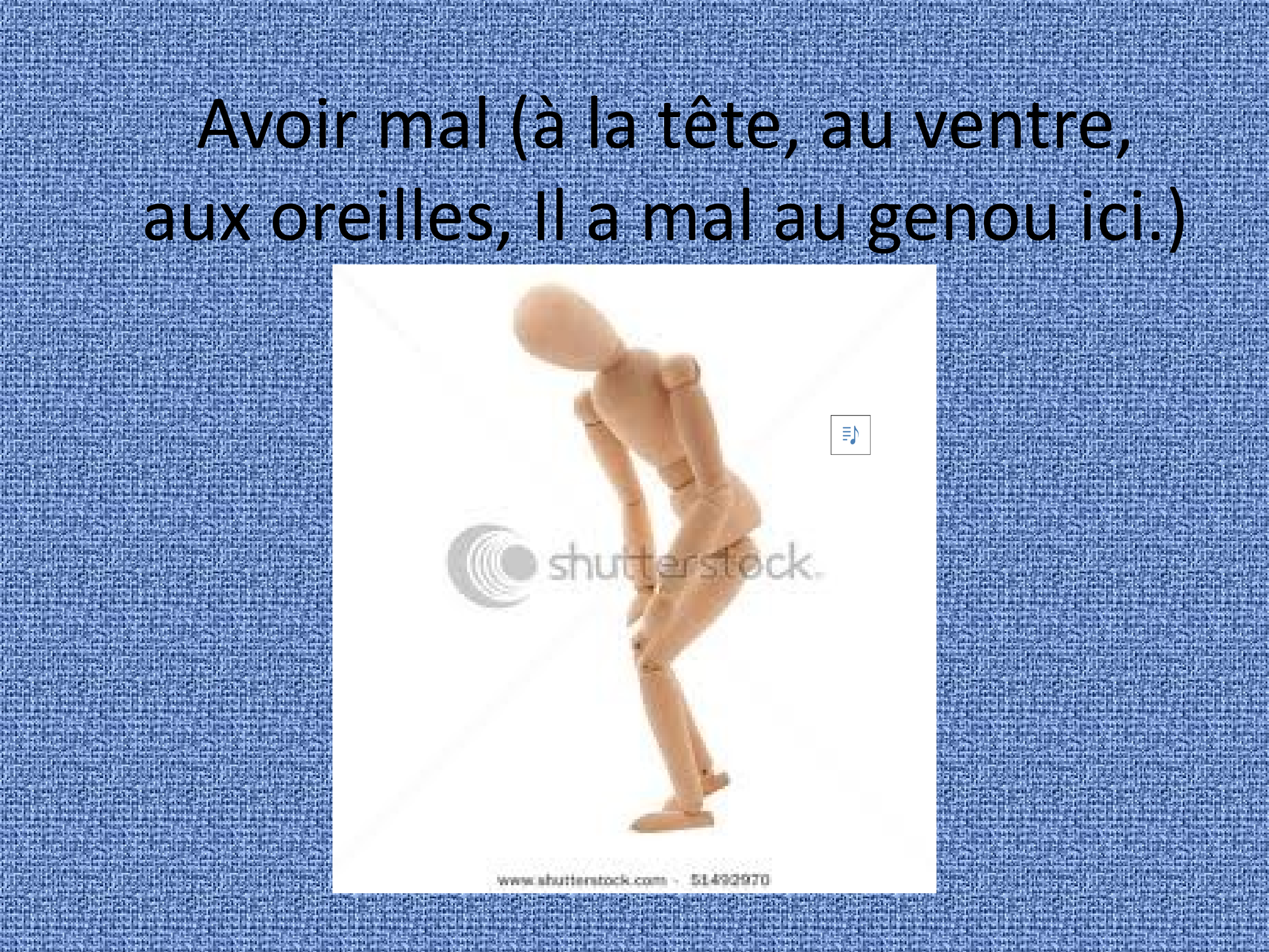 I have a broken leg. --> J'ai la jambe cassé.