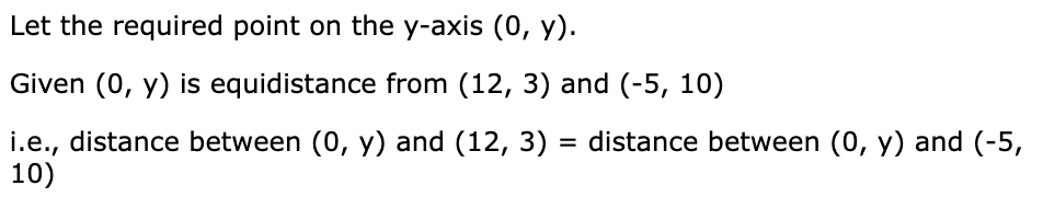 Which point on the y-axis is equidistance from the points (12, 3) and (-5, 10)?