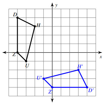The symbolic representation of the transformation shown is ( x , y ) → ( _______ , _______ )