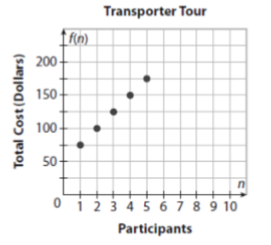 The graph shows how the cost of a personal transporter tour depends on the number of participants.