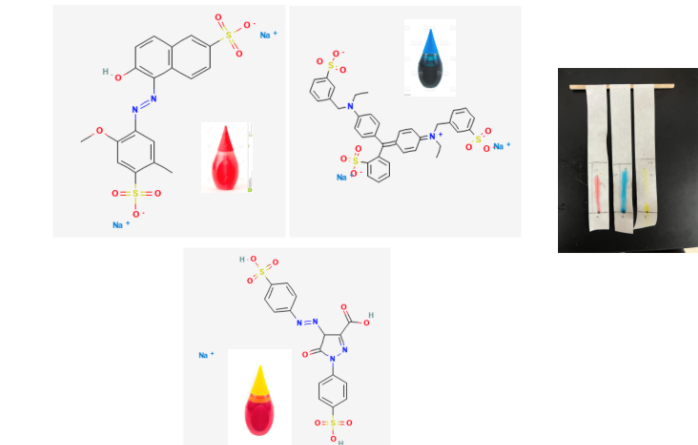 Upload pictures of your 4.1 lab dye observations and their Rf values.
