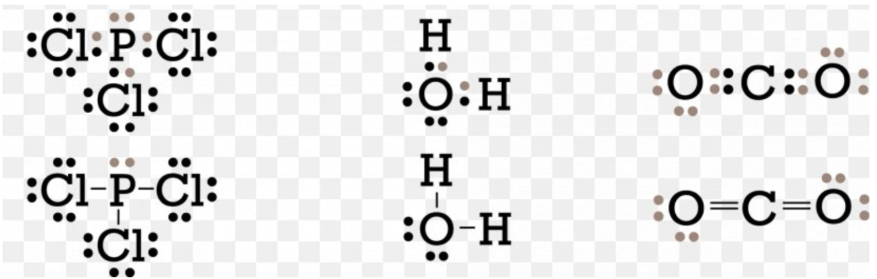Look carefully at the diagram below of three different molecules: PCl3, H2O, and CO2.
