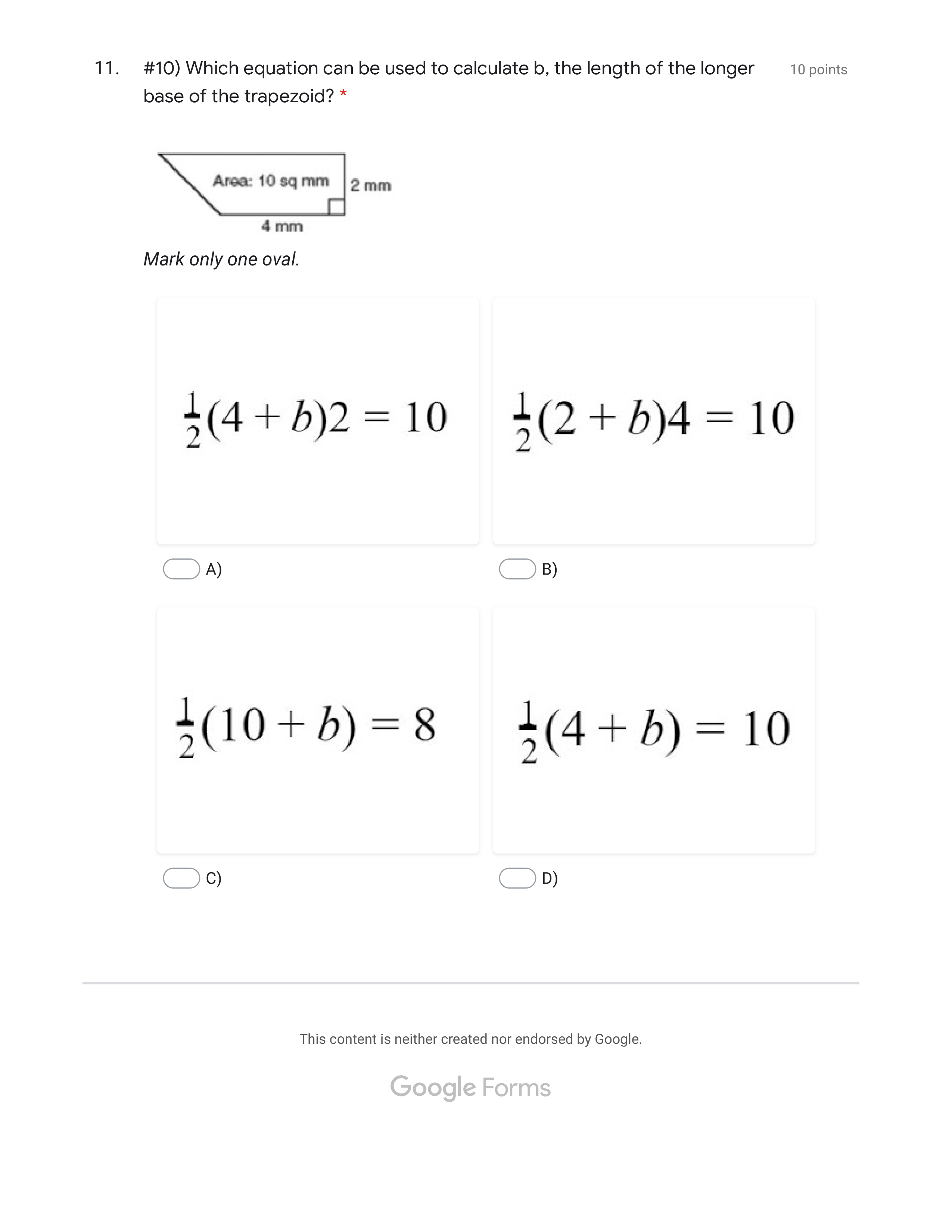 Which equation can be used to calculate b, the length of the longer base of the trapezoid?