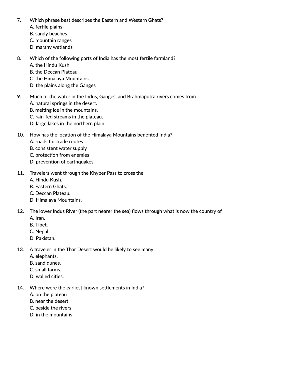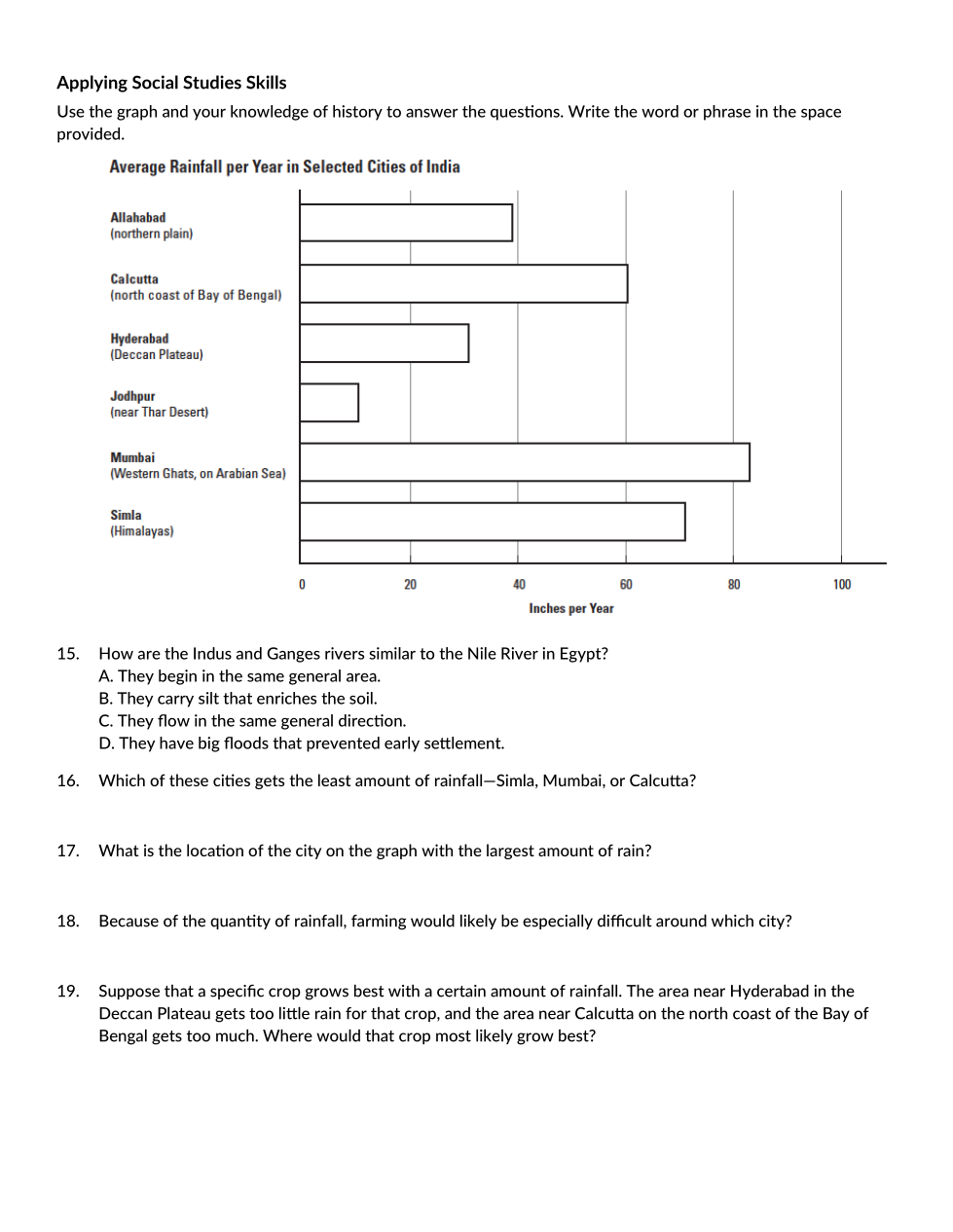 Suppose a specific crop grows best with a certain amount of rainfall. The area near Hyderpad in the Deccan Plateau gets too little rain for that crop, and the area near Calcutta on the north coast of the Bay of Bengal gets too much. Where would that crop most likely grow best?