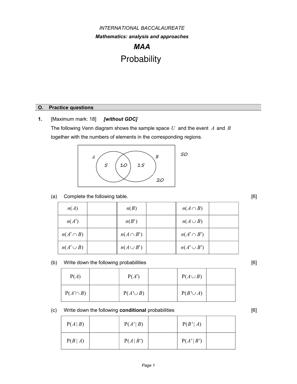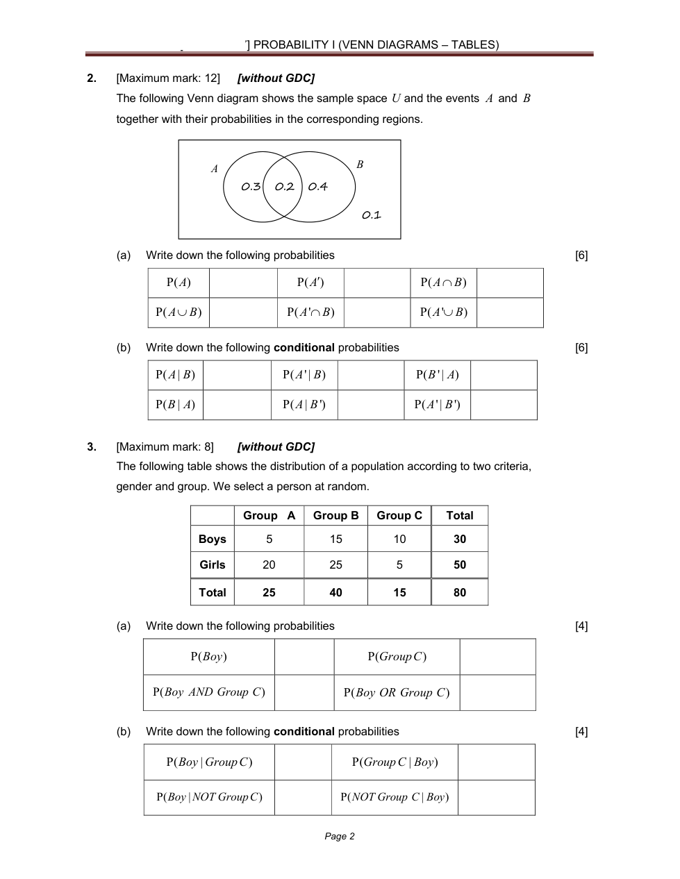 #3 VENN DIAGRAMS (PACKET PROBLEMS #1-4 (WITH CONDITIONAL PROB)