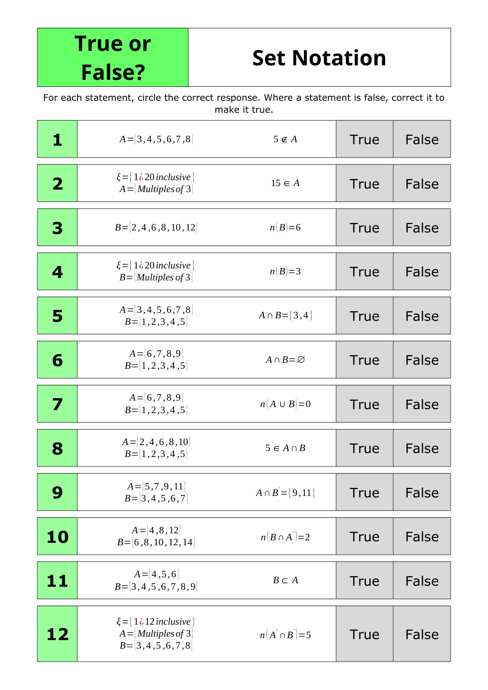 SET NOTATION QUIZ