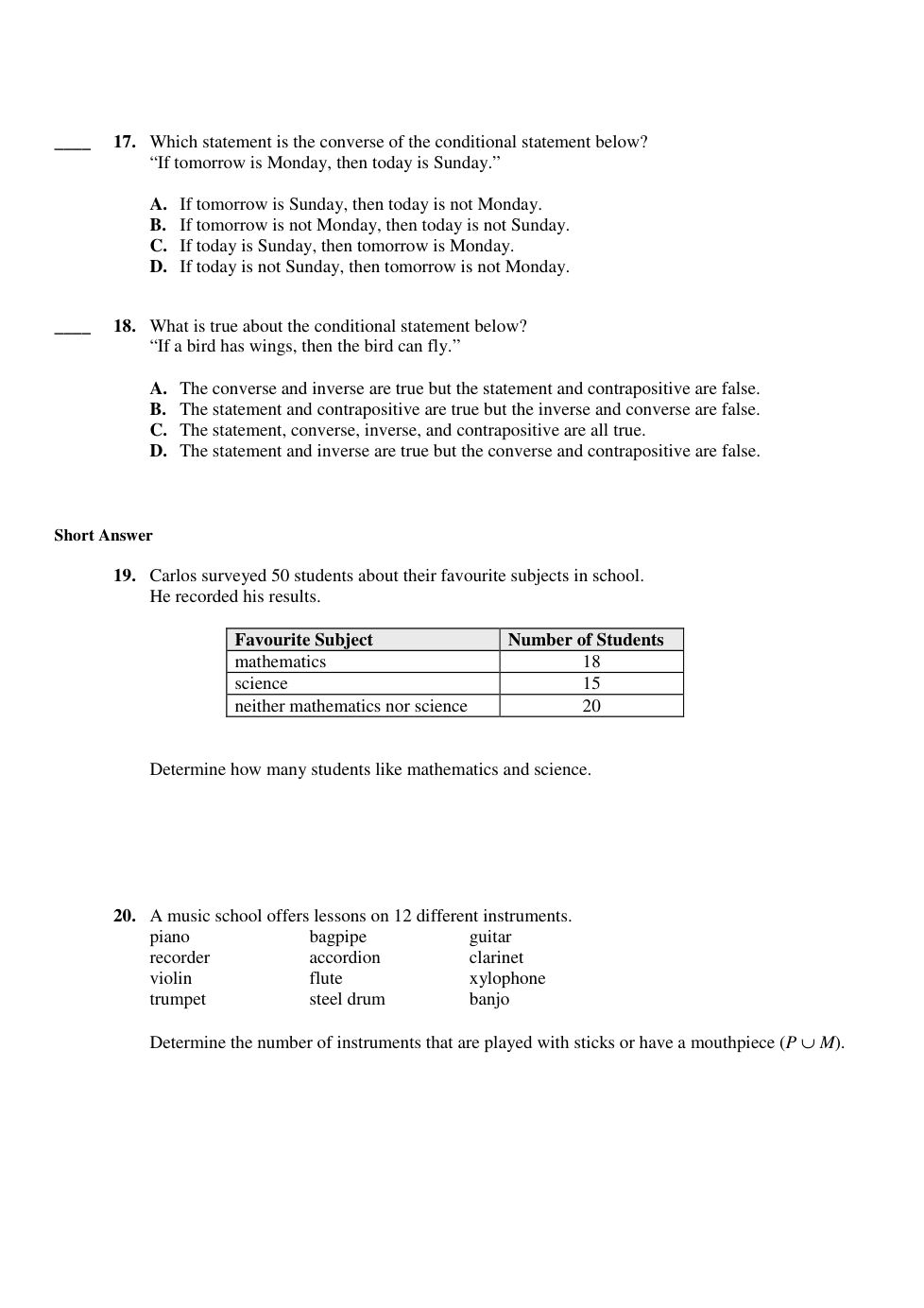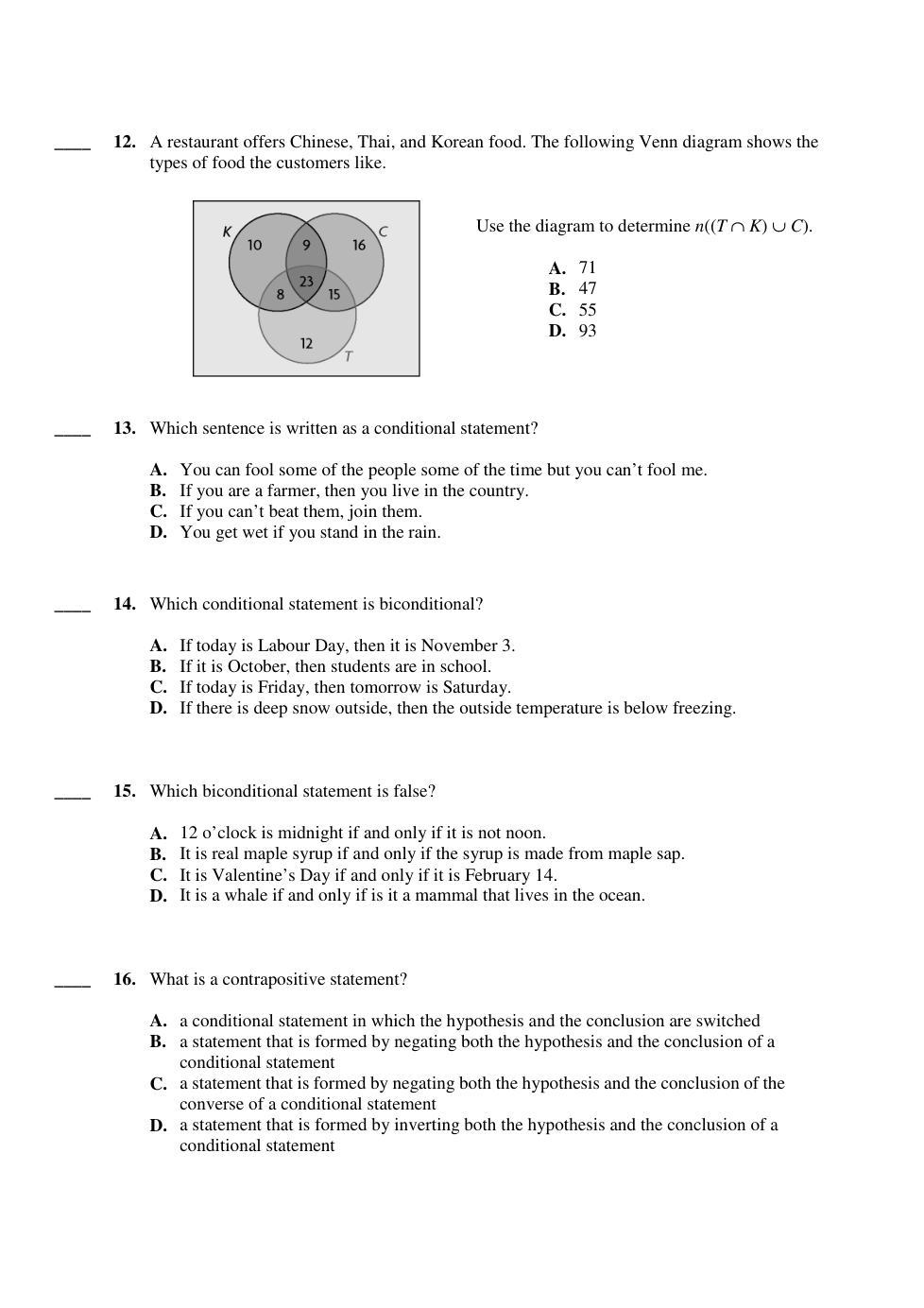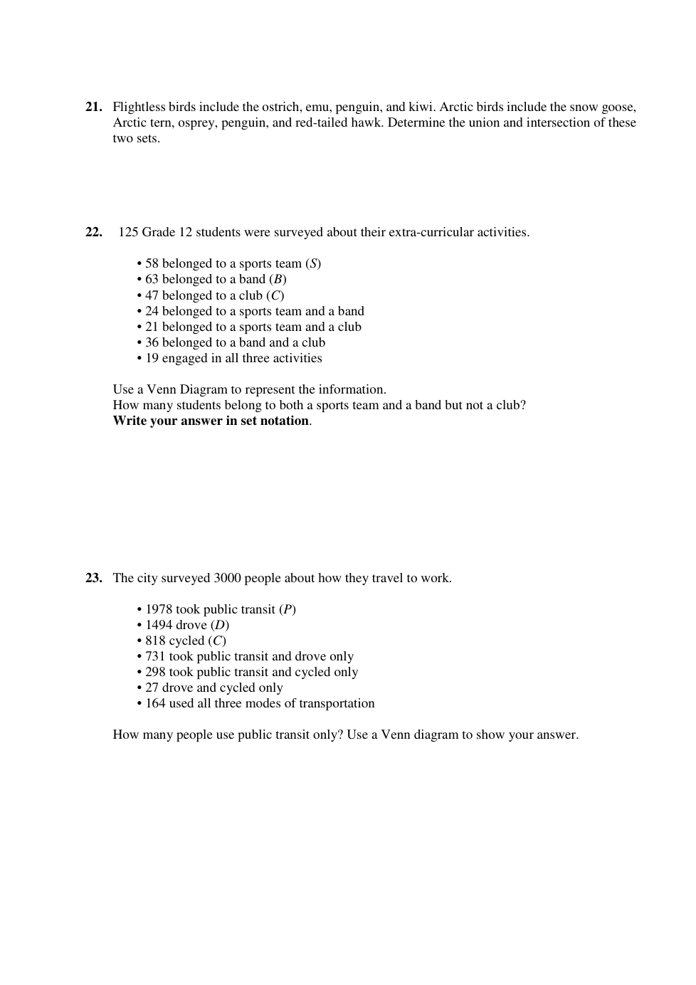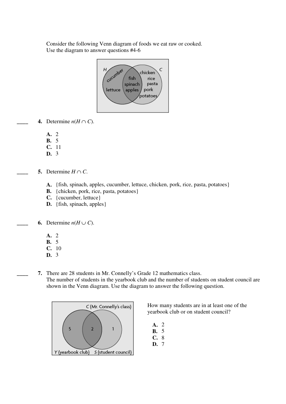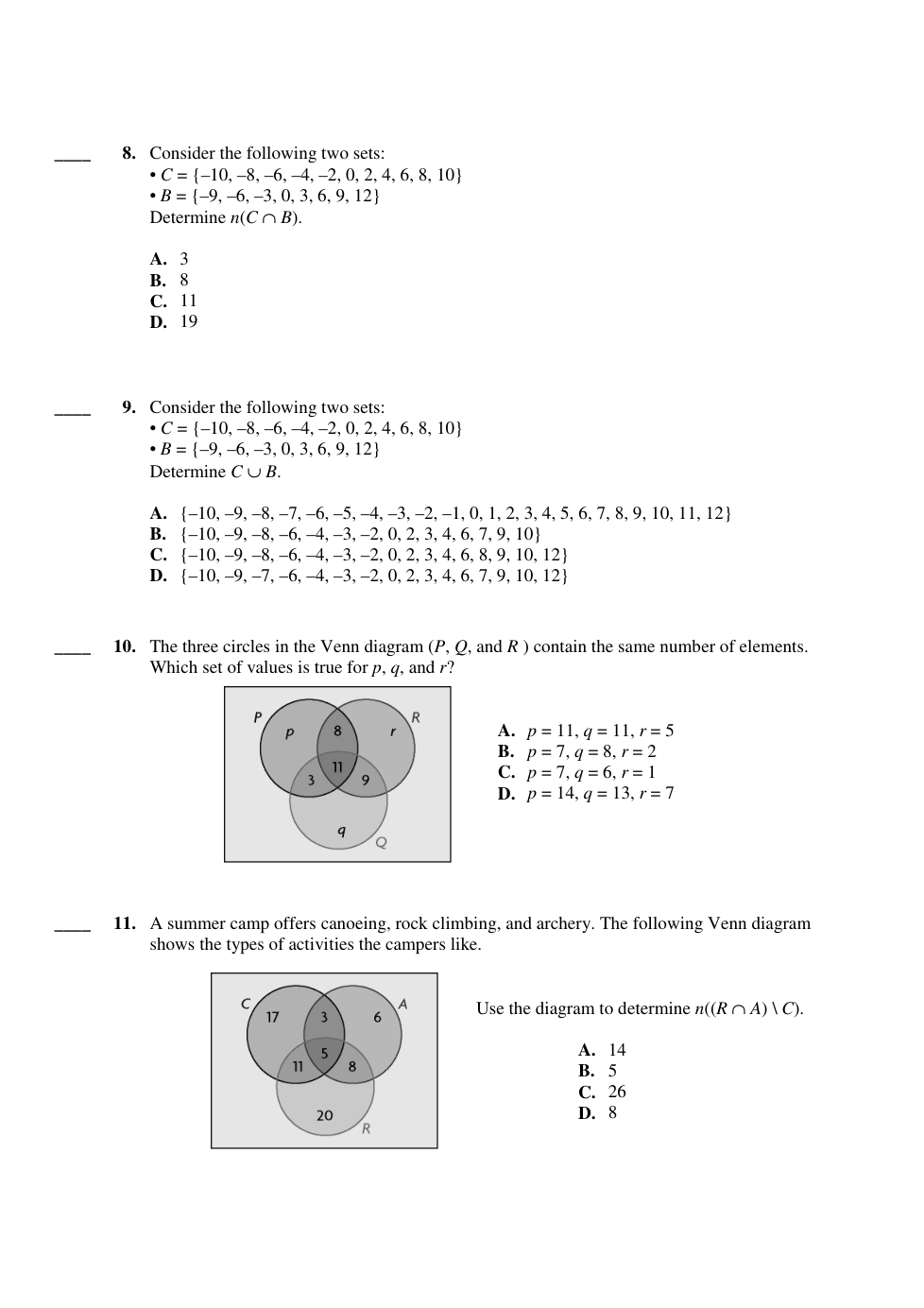 SELECT ALL THAT BELONG IN THE UNION OF THESE SETS