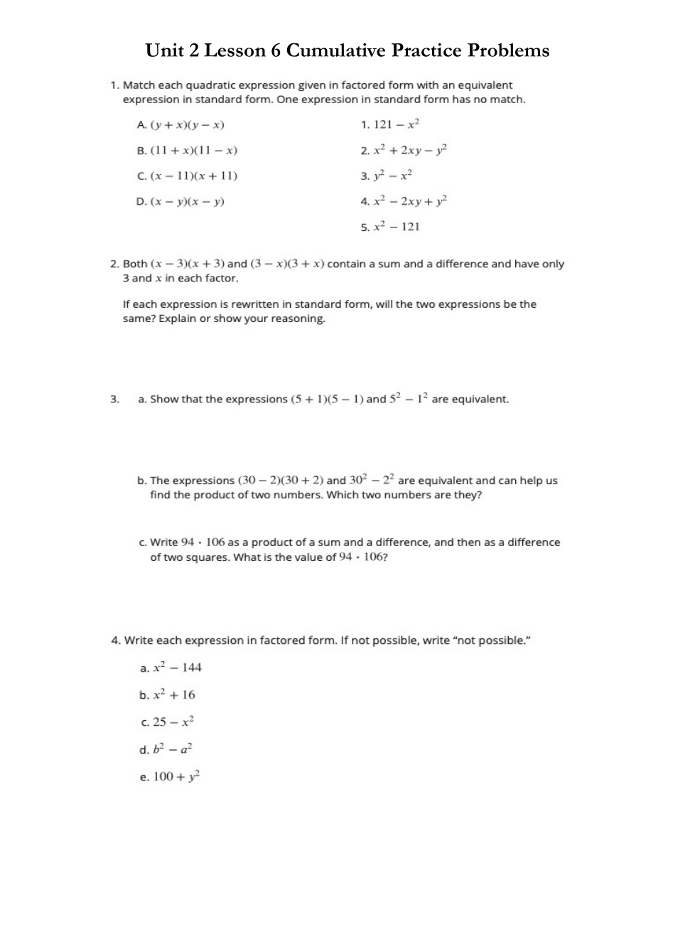Match each quadratic expression in factored form with it's equivalent expression in standard form. One expression in standard form has no match.