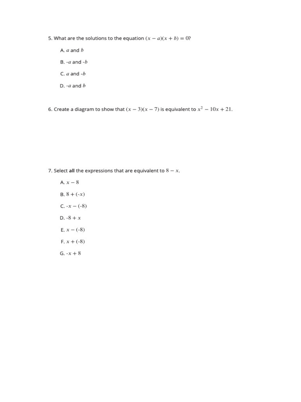 What are the solutions to the equation (x - a)(x + b) = 0?