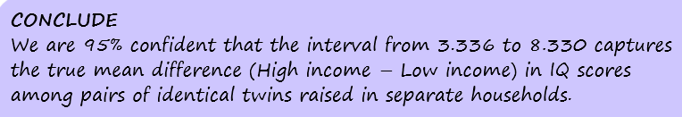 You can now use TInterval (the same function we used for 1 sample mean intervals in 10.1) to calculate a 95% confidence interval for the DIFFERENCE in temperature between 1900 and 2000.