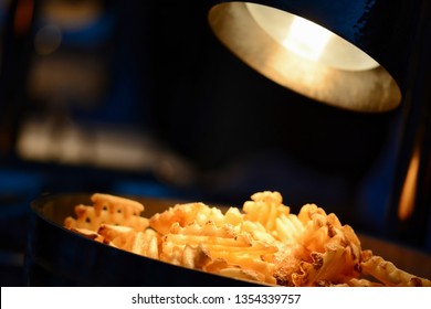 A heat lamp shines light/radiant energy on food to keep it warm.