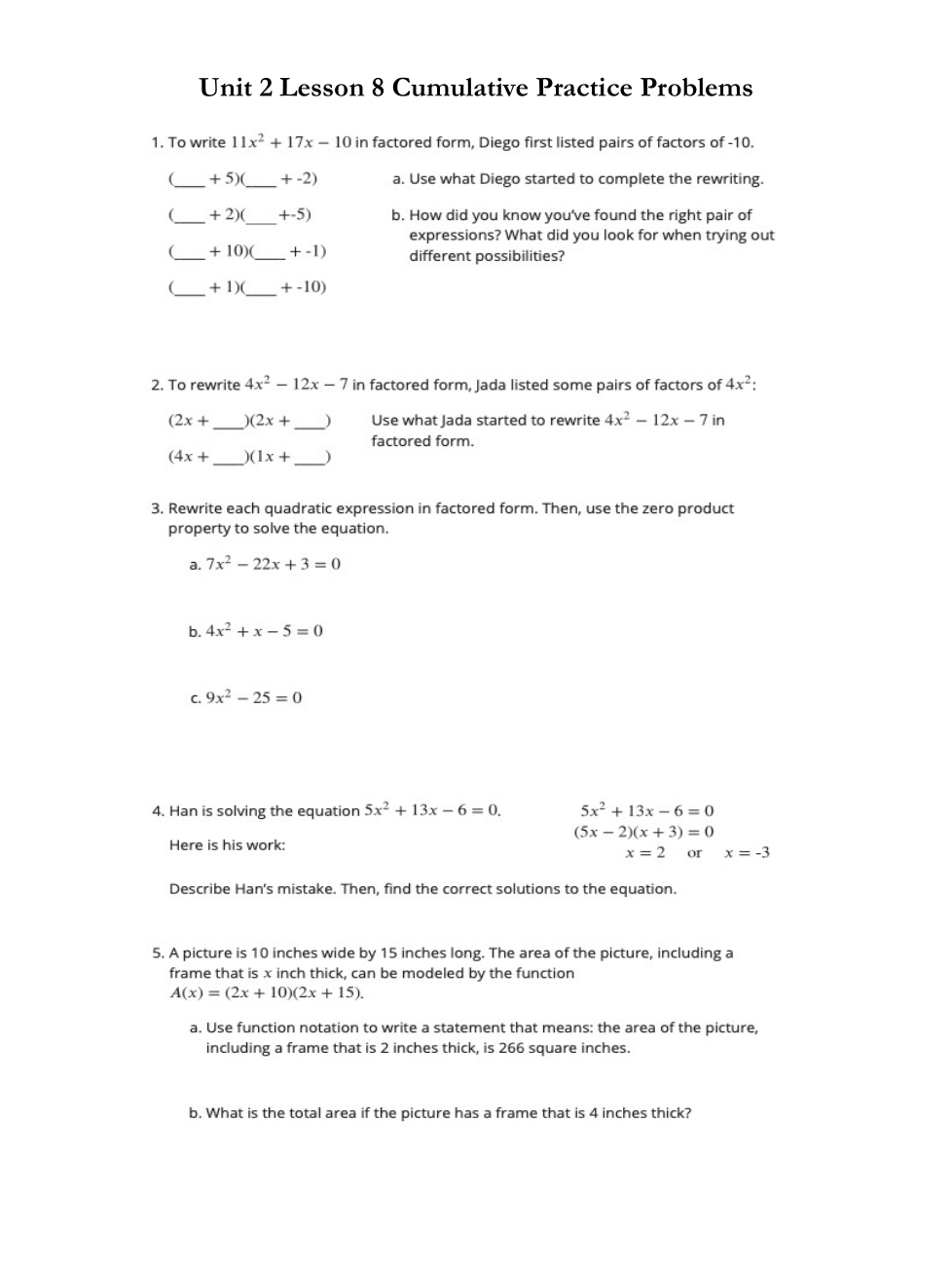 What is one solution to the equation 5x2 + 13x - 6 = 0?