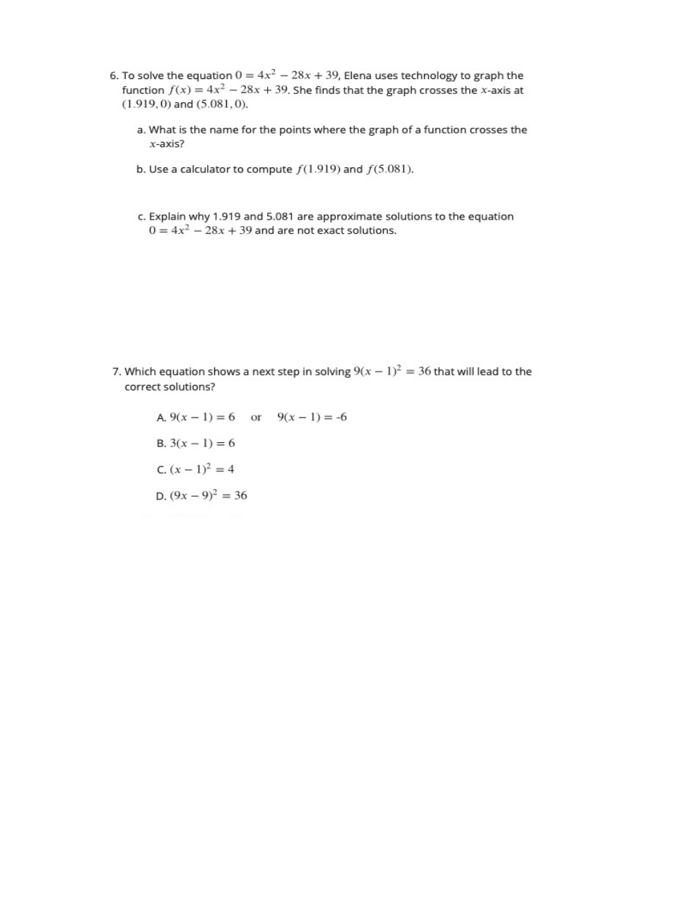 Which equation shows a next step in solving 9(x - 1)2 = 36 that will lead to the correct solutions?