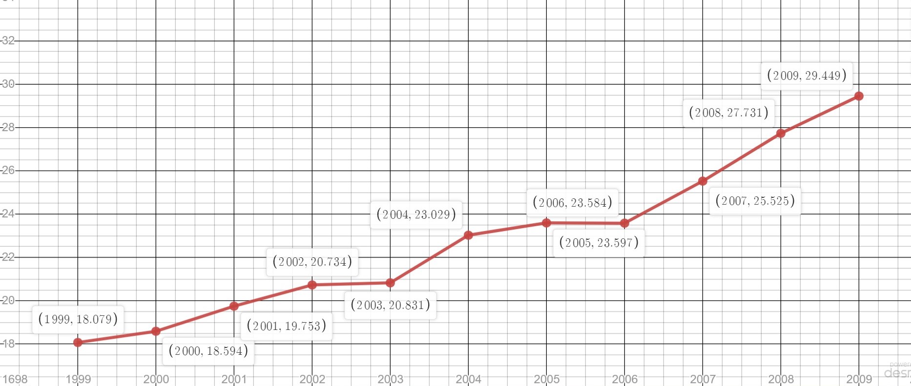 What is the relative minimum of billions of dollars spent between the years 2005 and 2009?