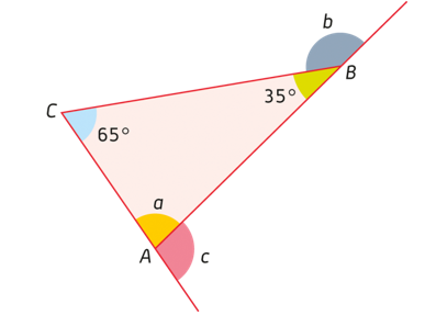 Considera o triângulo [ABC] e os ângulos a, b, e c representados na figura. A amplitude do ângulo b é igual a :