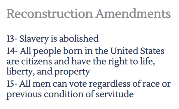 Content Objective: I will be able to recognize the modern and historical significance of The Reconstruction Era.