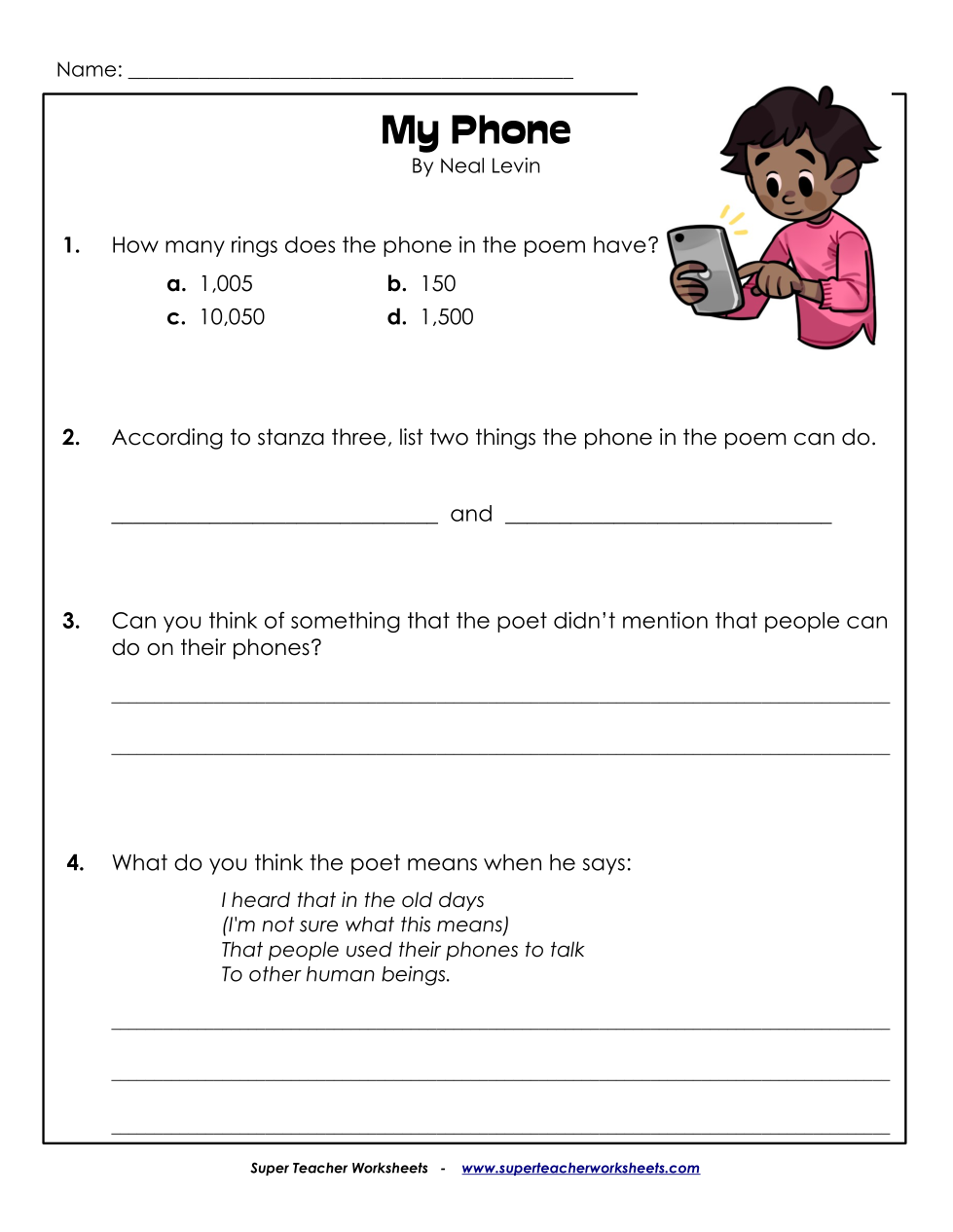 According to stanza three, list two things that the phone in the poem can do. _______ _______