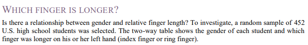 Given the data, is there associated between gender and the size of certain fingers? Explain.
