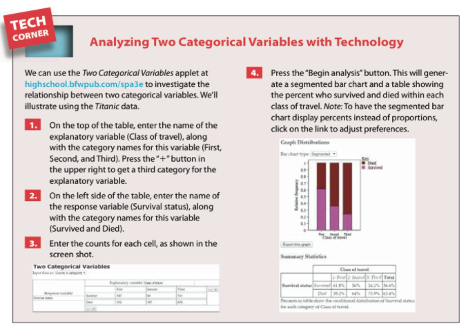 The following provides instructions for using the graph making applet below. The example describes how to create a graph of the data we looked at today regarding the survival status of certain class travelers on the titanic. Refer to this for support if necessary.
