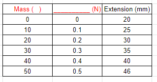 To investigate how adding mass to a spring affects its extension the following equipmen was used.