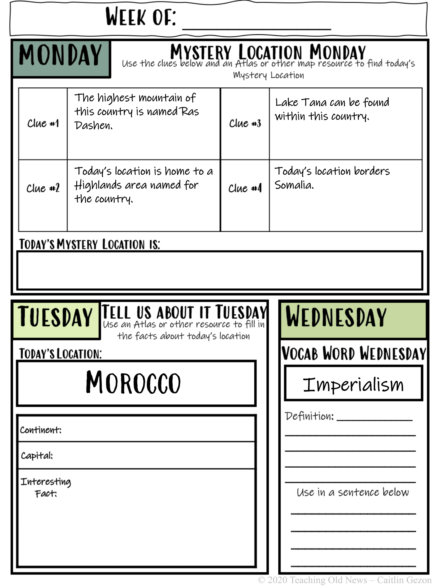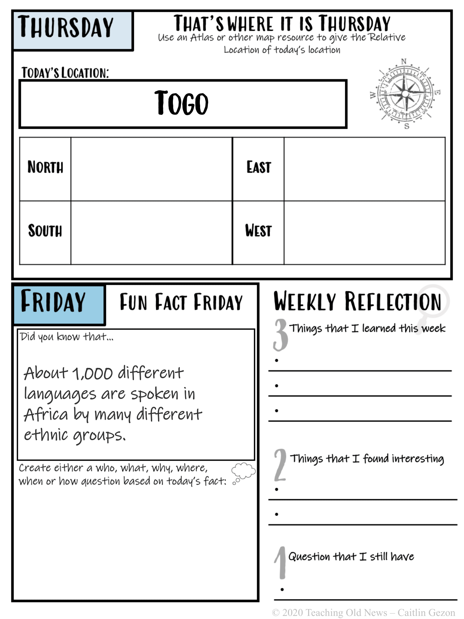 Daily Geography Warm-up Journal #22