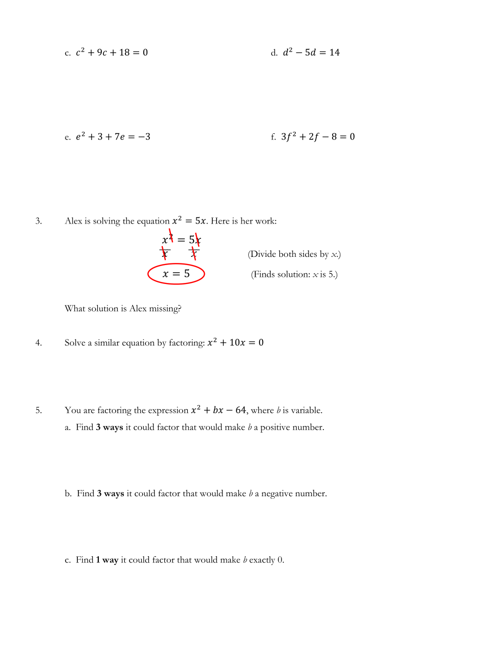 What is the only set of factors of x2 + bx - 64 that would make b exactly 0?
