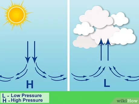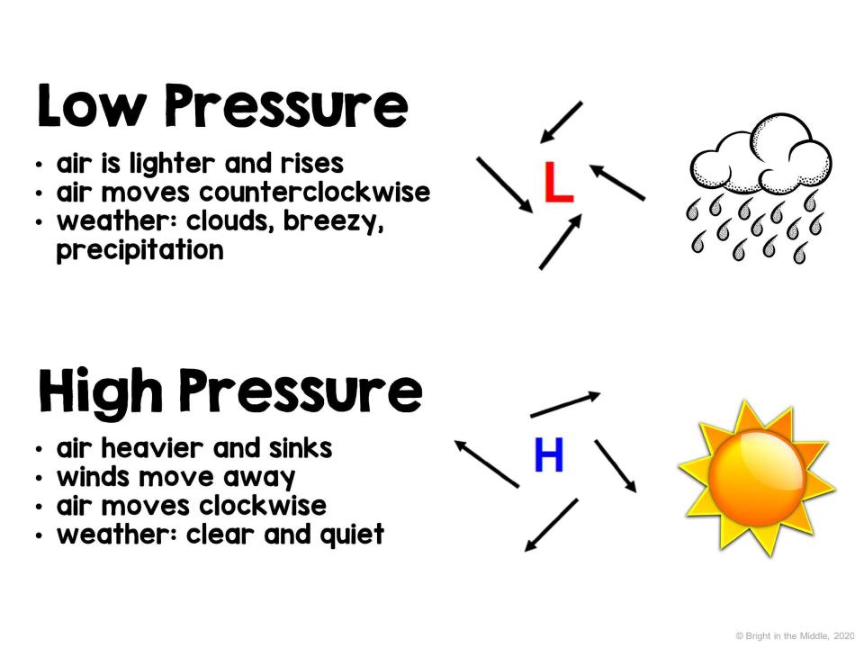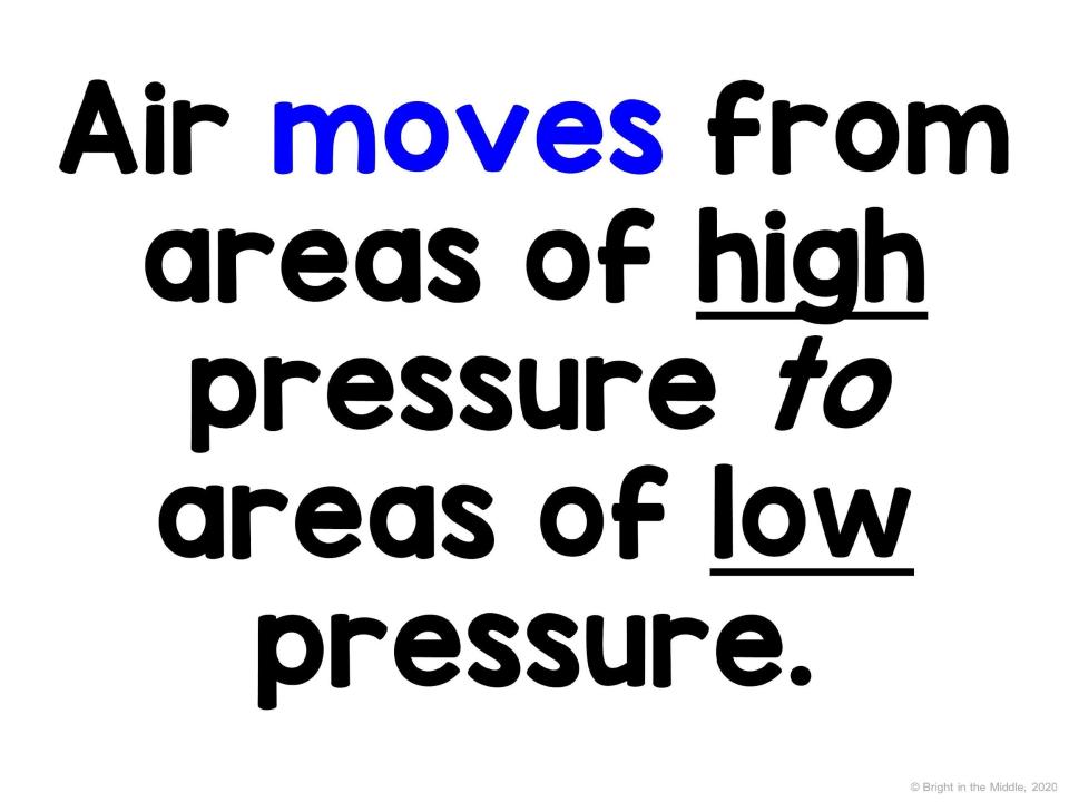 We observed air move from areas of _______ pressure to areas of _______ pressure.