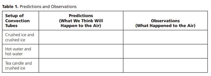Predict: What do you think will happen to air in convection tubes when there is a tea candle on one side and ice on the other side?