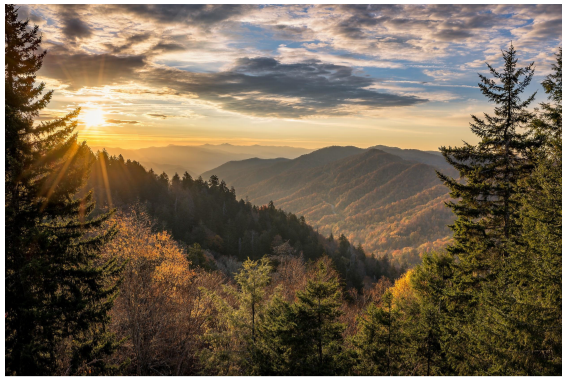 Features on the surface of Earth, such as mountains, hills, dunes, oceans, or rivers