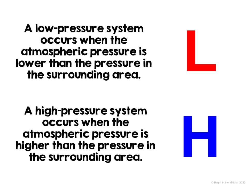 Complete the T-chart to show what you have learned about low pressure and high pressure systems.
