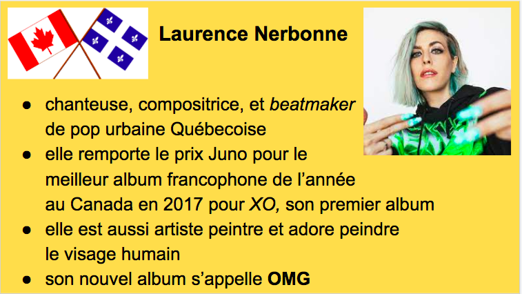 Based on the answer to question #7 she describes herself as une "enfant du monde". What does the world "monde" mean in English? Use wordreference.com to look up if you're not sure!