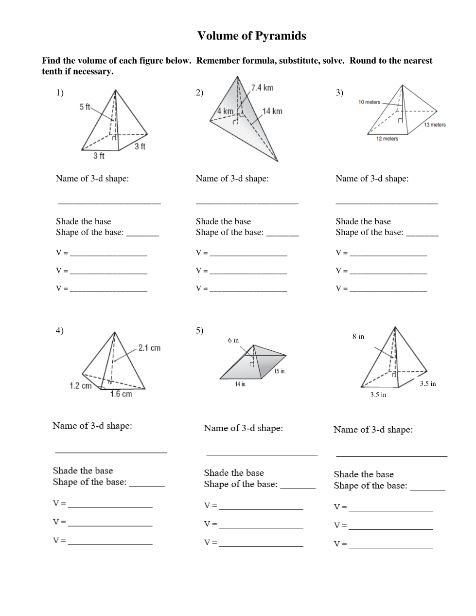 Find the Volume of your shape. Round to the nearest tenth