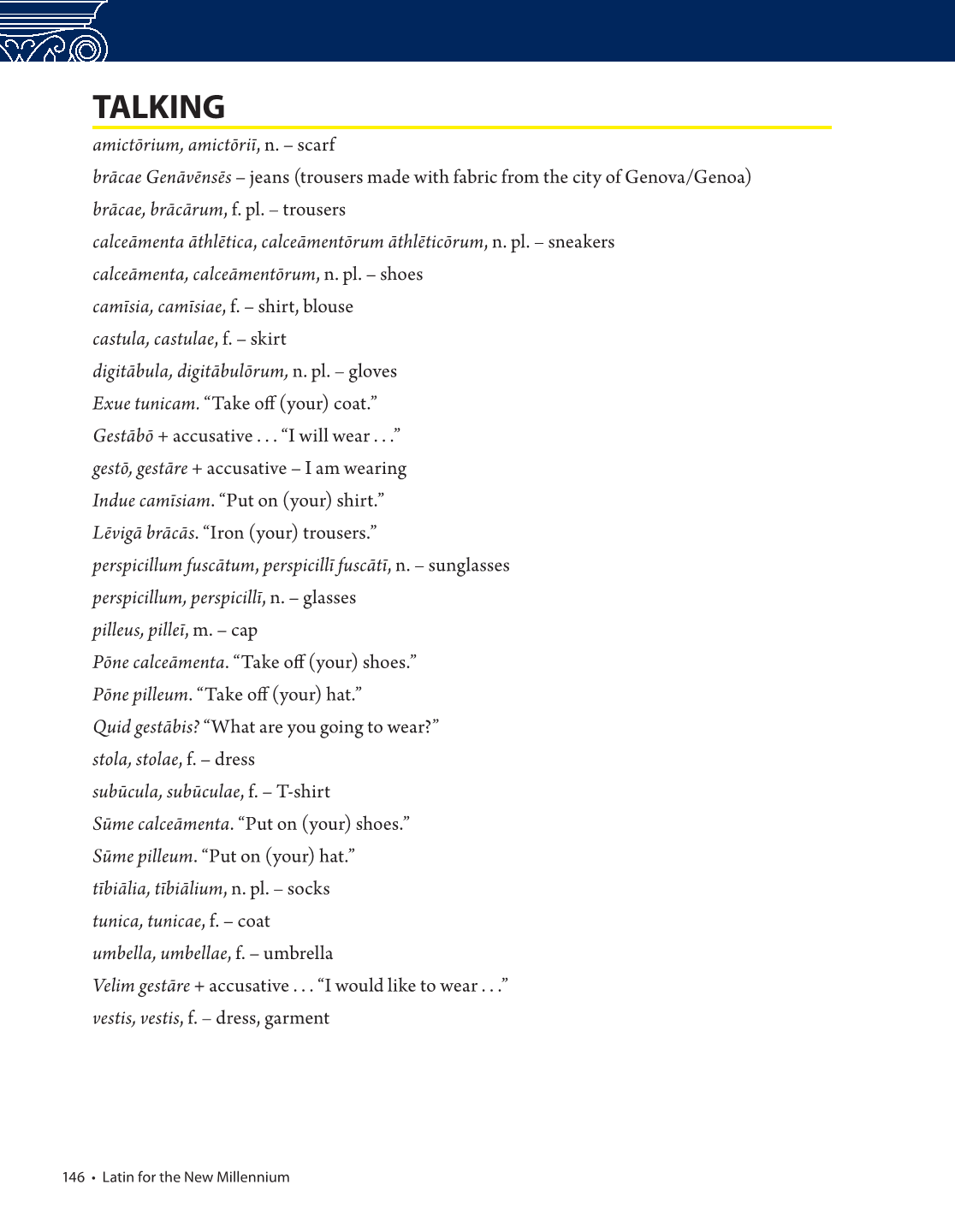 Quid gestābis? | arrow_right_alt | “Put on (your) shoes.” |