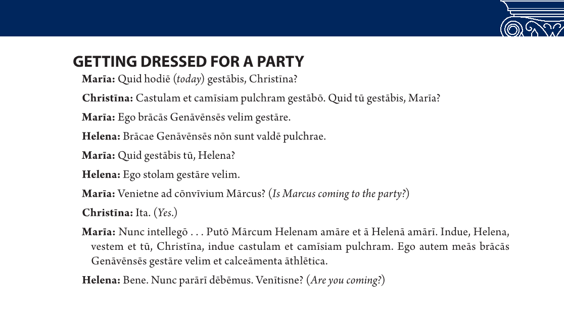 Helena: Bene. Nunc parārī dēbēmus. Venītisne? (Are you coming?)