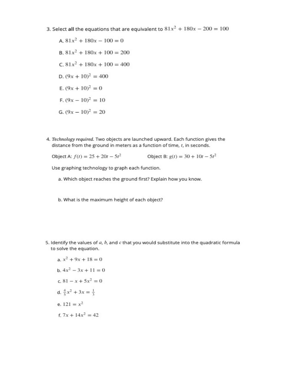 Select all the equations that are equivalent to 81x2 + 180x - 200 = 100