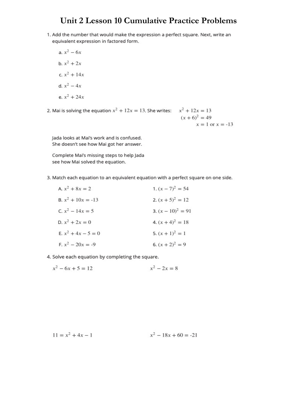 x2 + 2x = 0 | arrow_right_alt | (x - 10)2 = 91 |