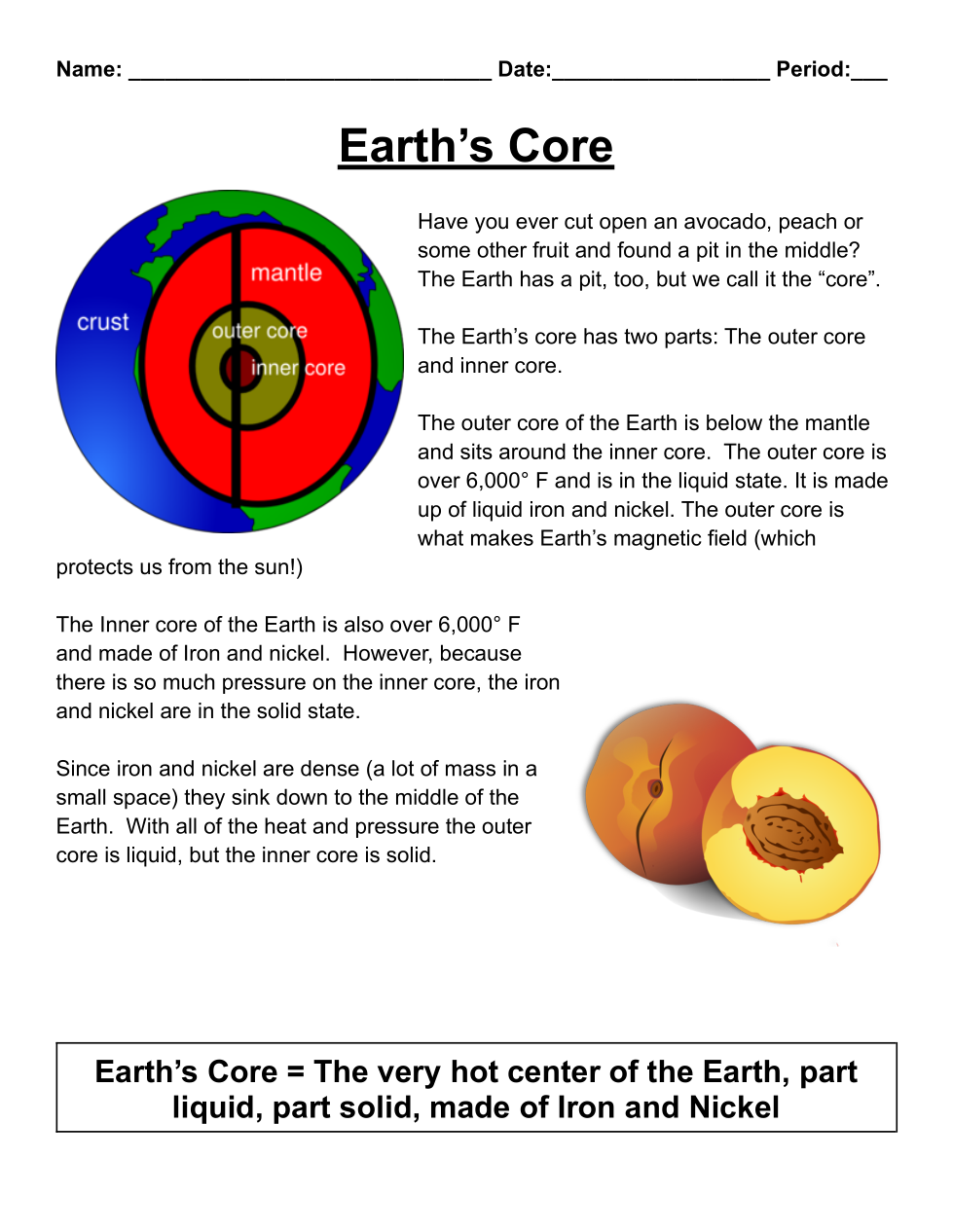 Earth's Core - Simple Science Reading VERSION C