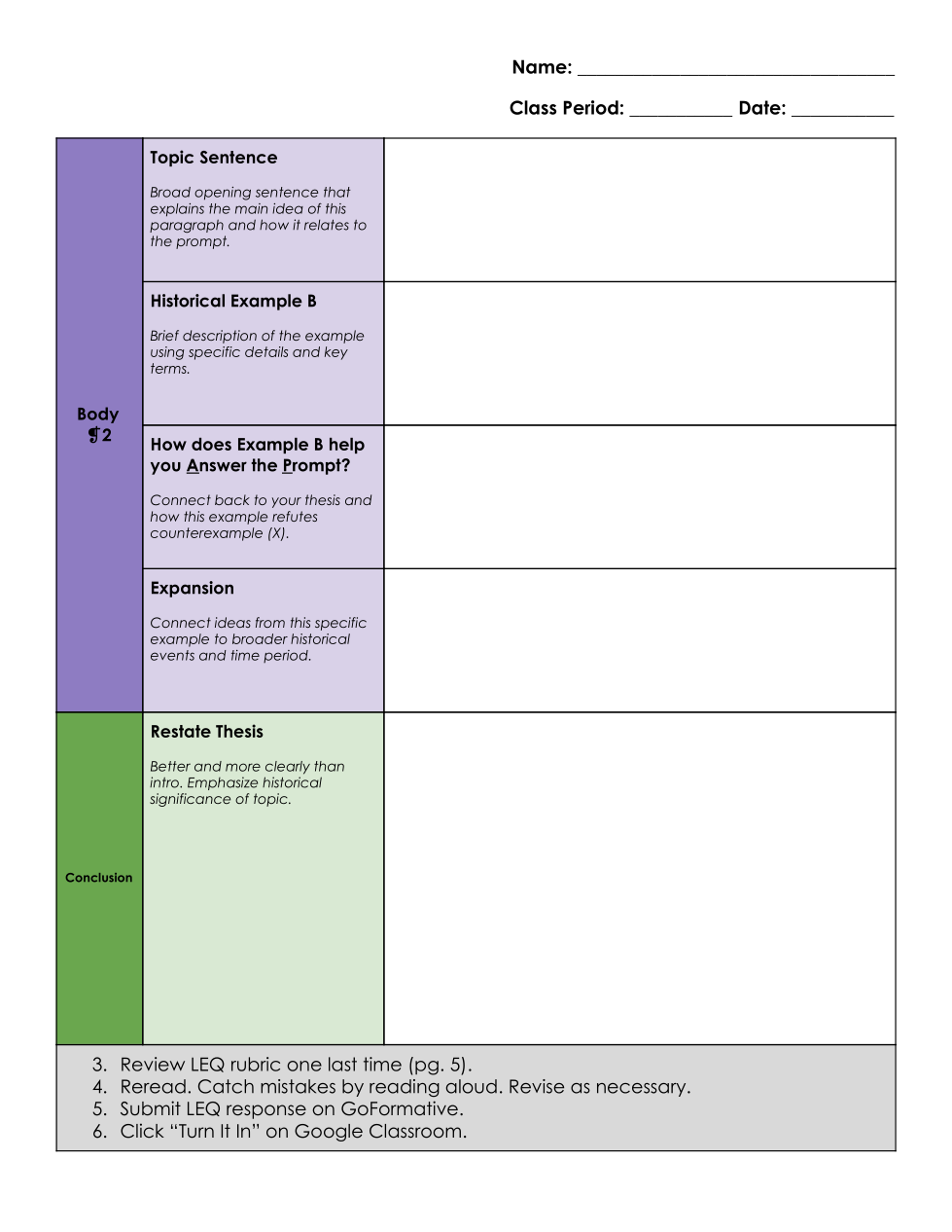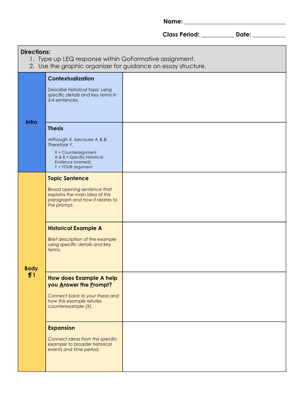 You're already to go! Now type your response to the LEQ question. Use the graphic organizer below to support with the essay structure.
