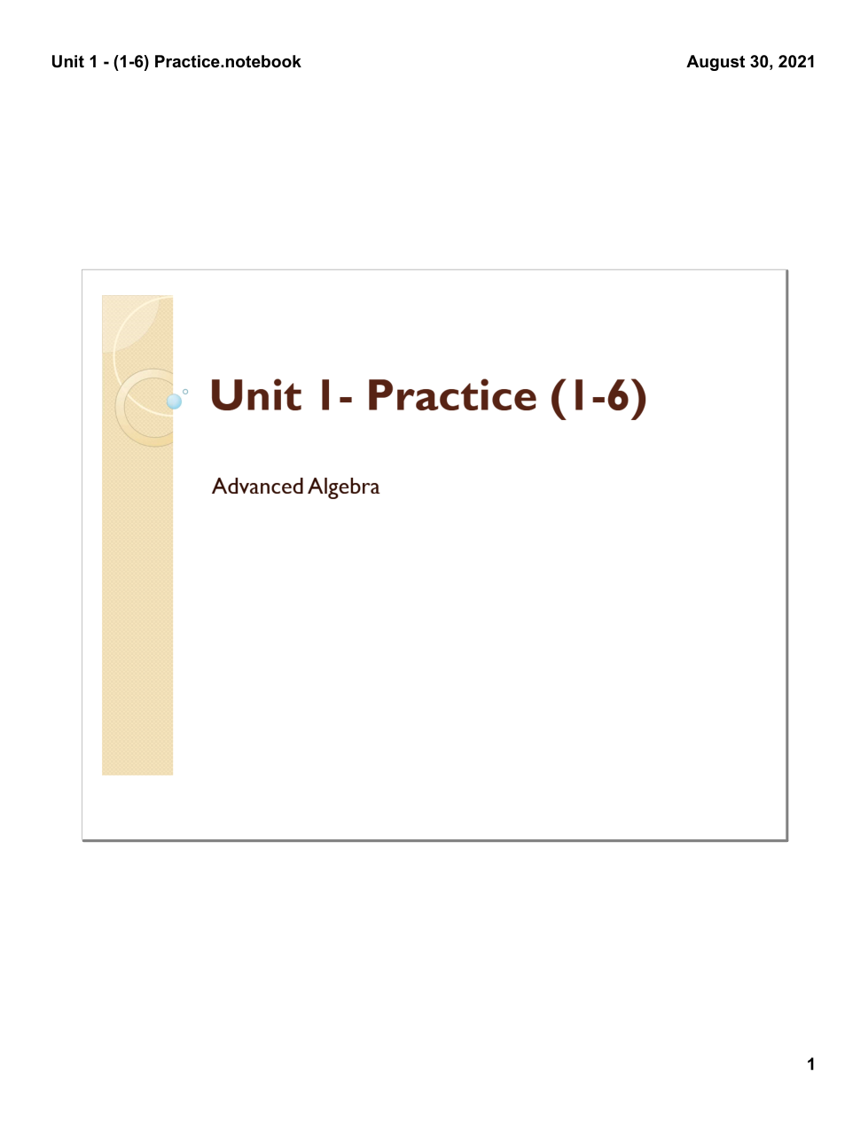 Adv Alg - Unit 1 Practice