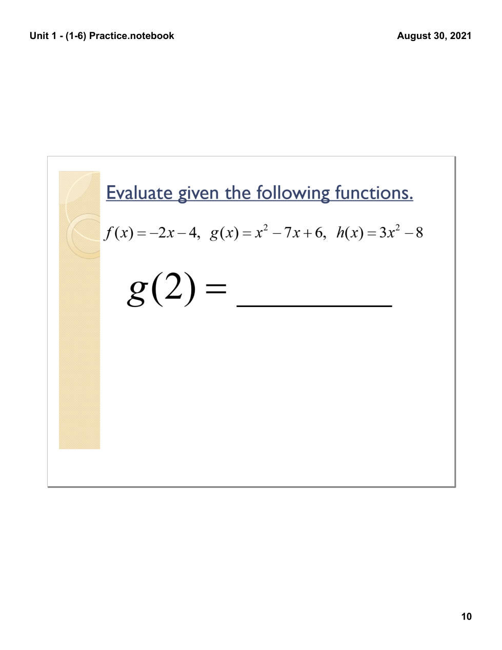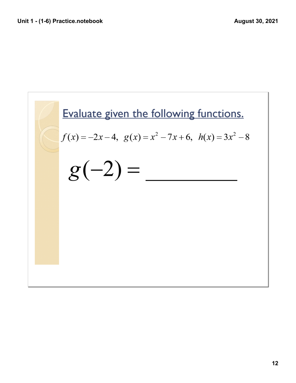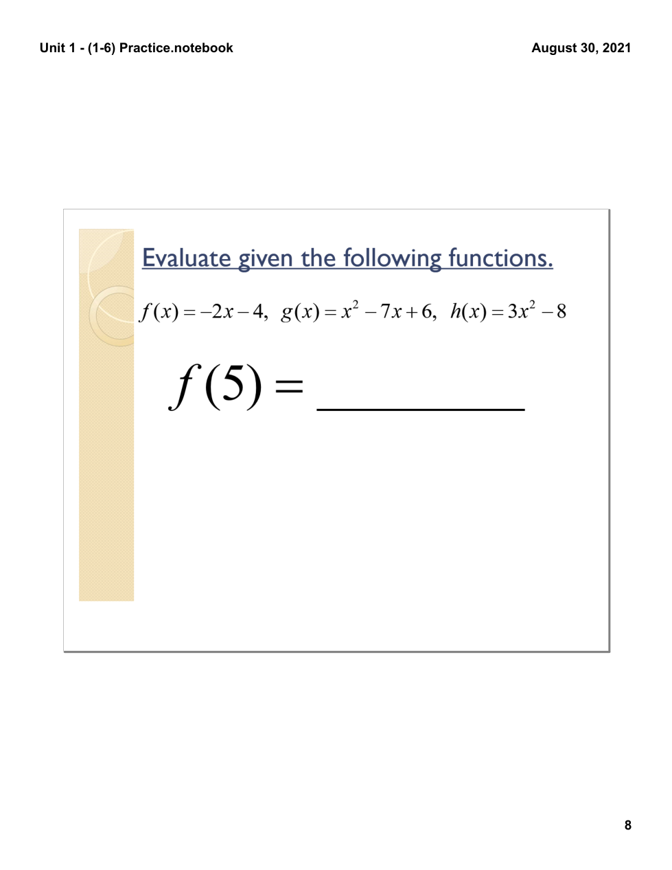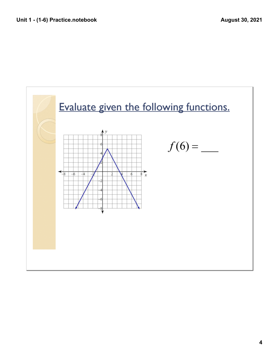 Evaluating functions & writing equations of lines practice