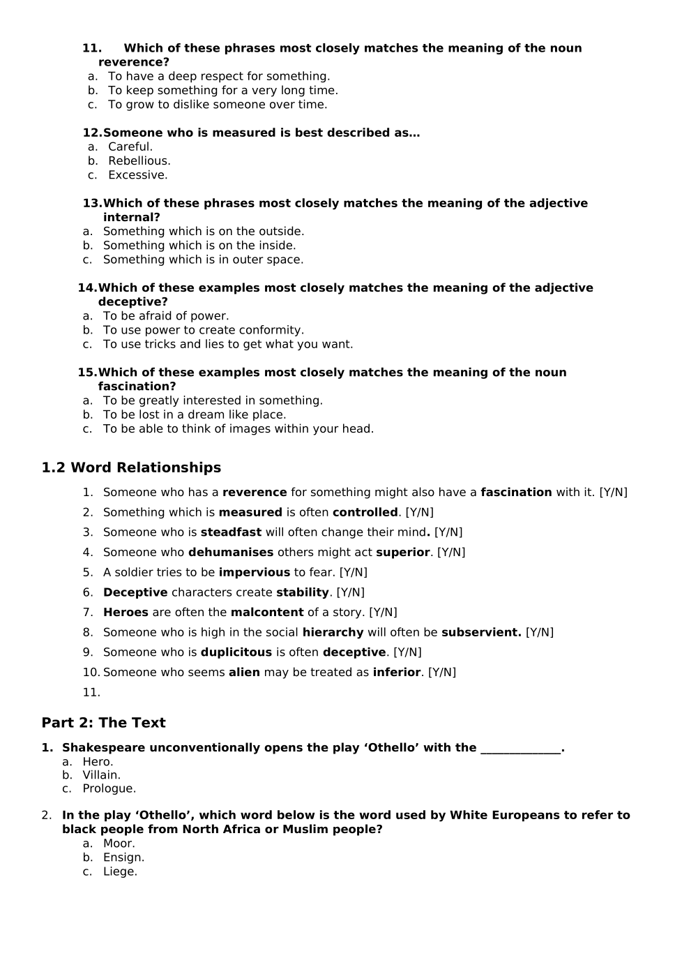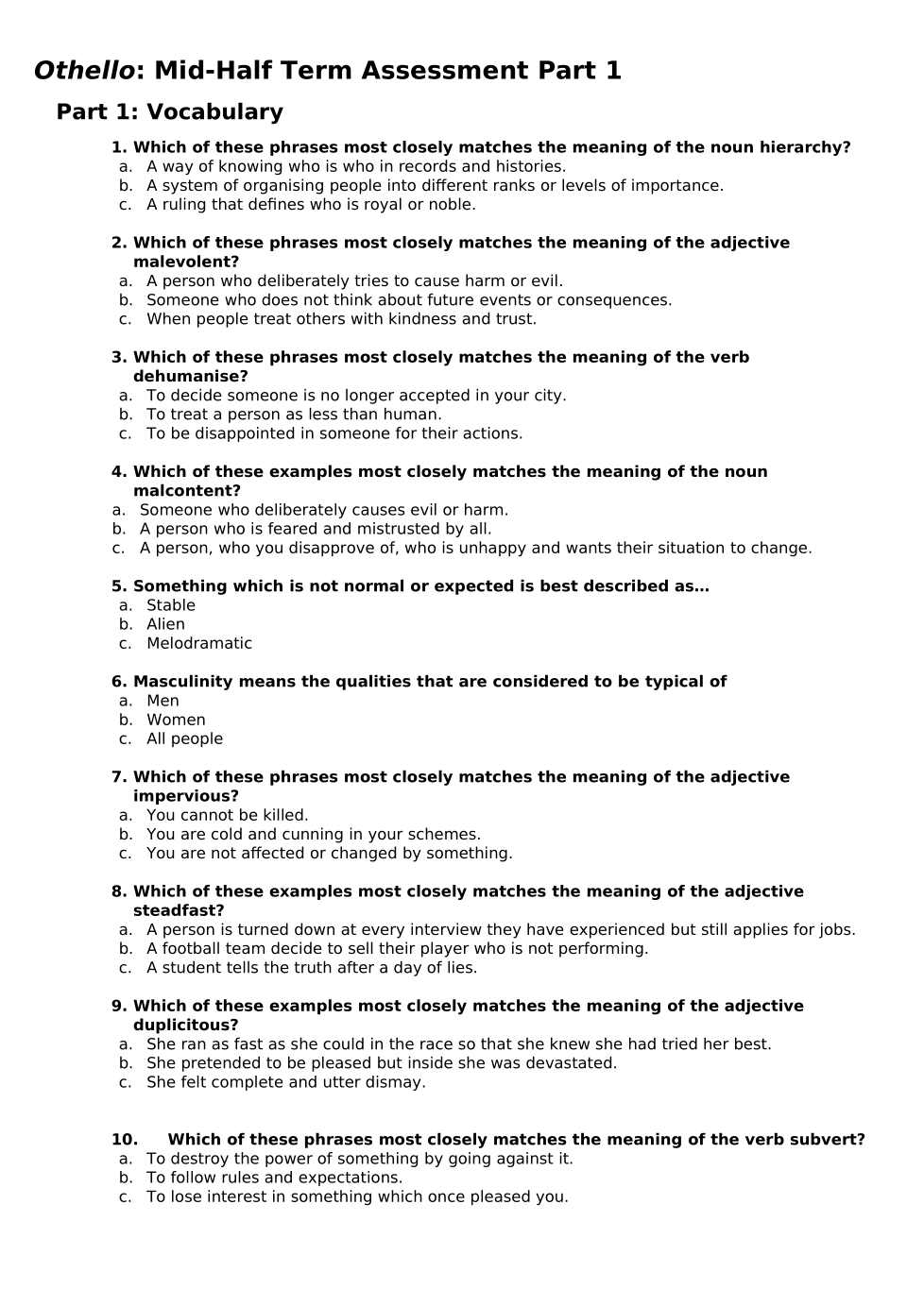 Othello is____ when he declares that 'My parts, my title, and my erfect soul/shall manifest me rightly