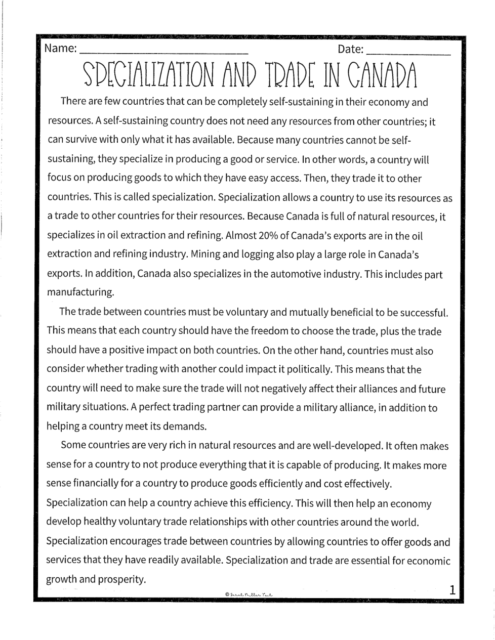 Cold Read - Specialization and Trade in Canada