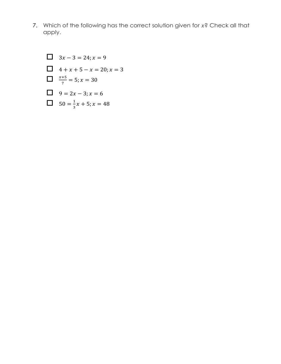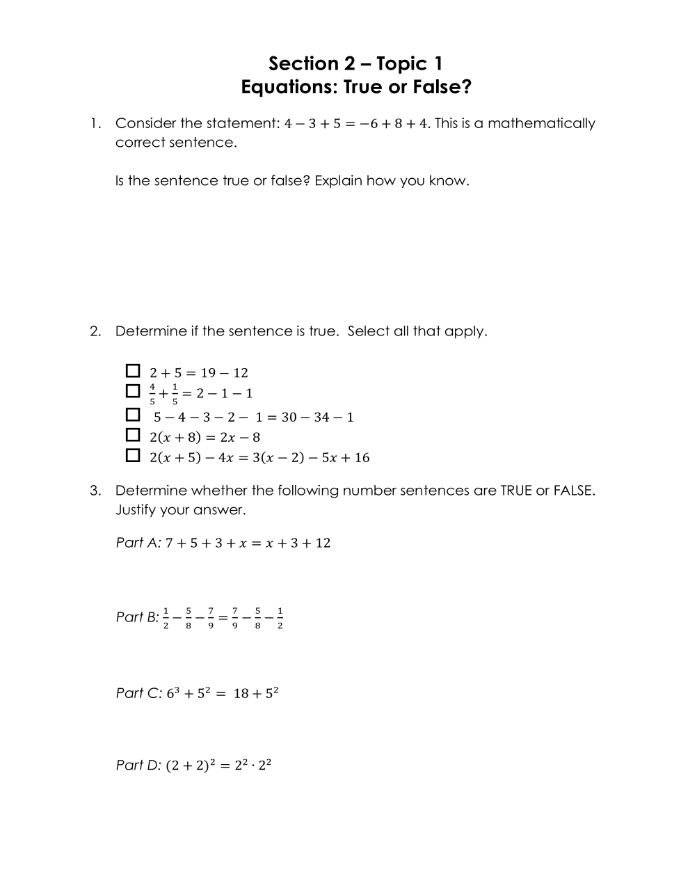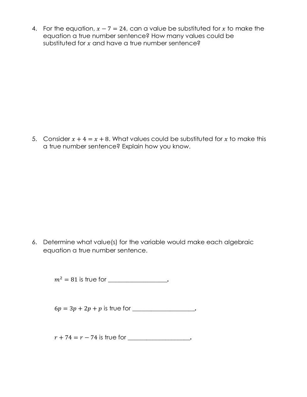 Other numbers can also be substituted for x to make the number sentence true.