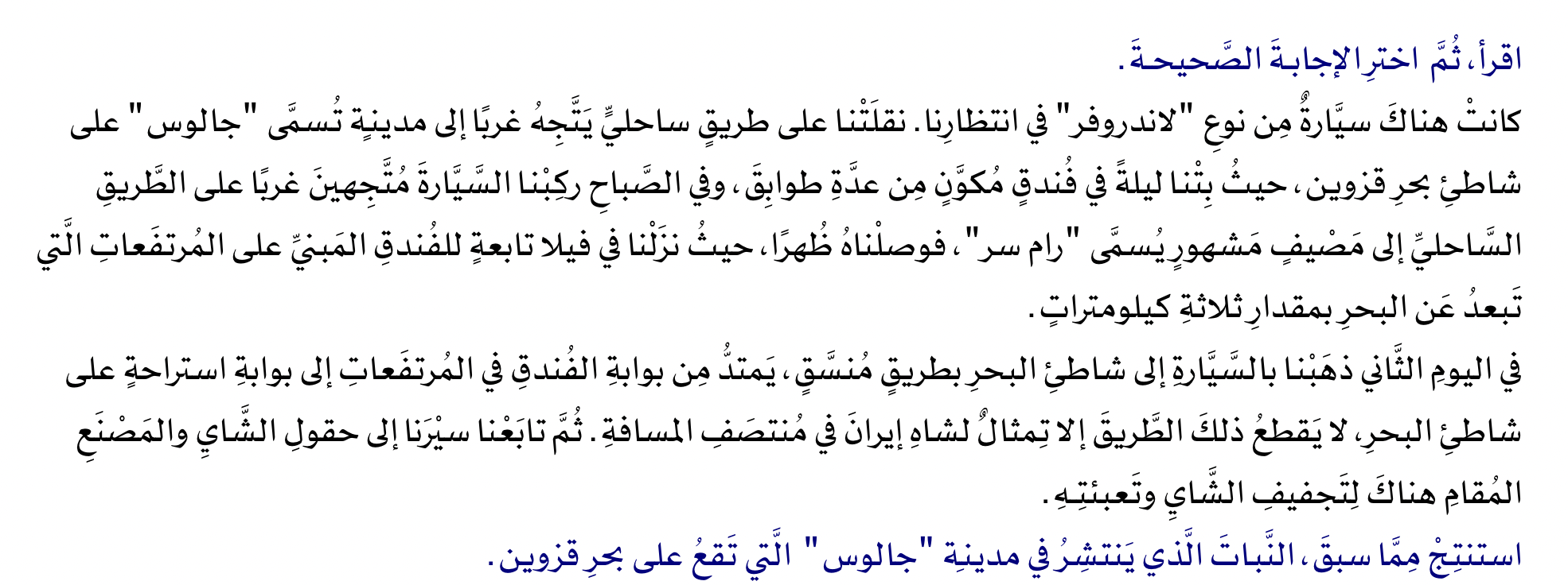 إستنتج من النص السابق النبات الذي ينتشر في مدينة جالوس التي تقع على بحر قزوين