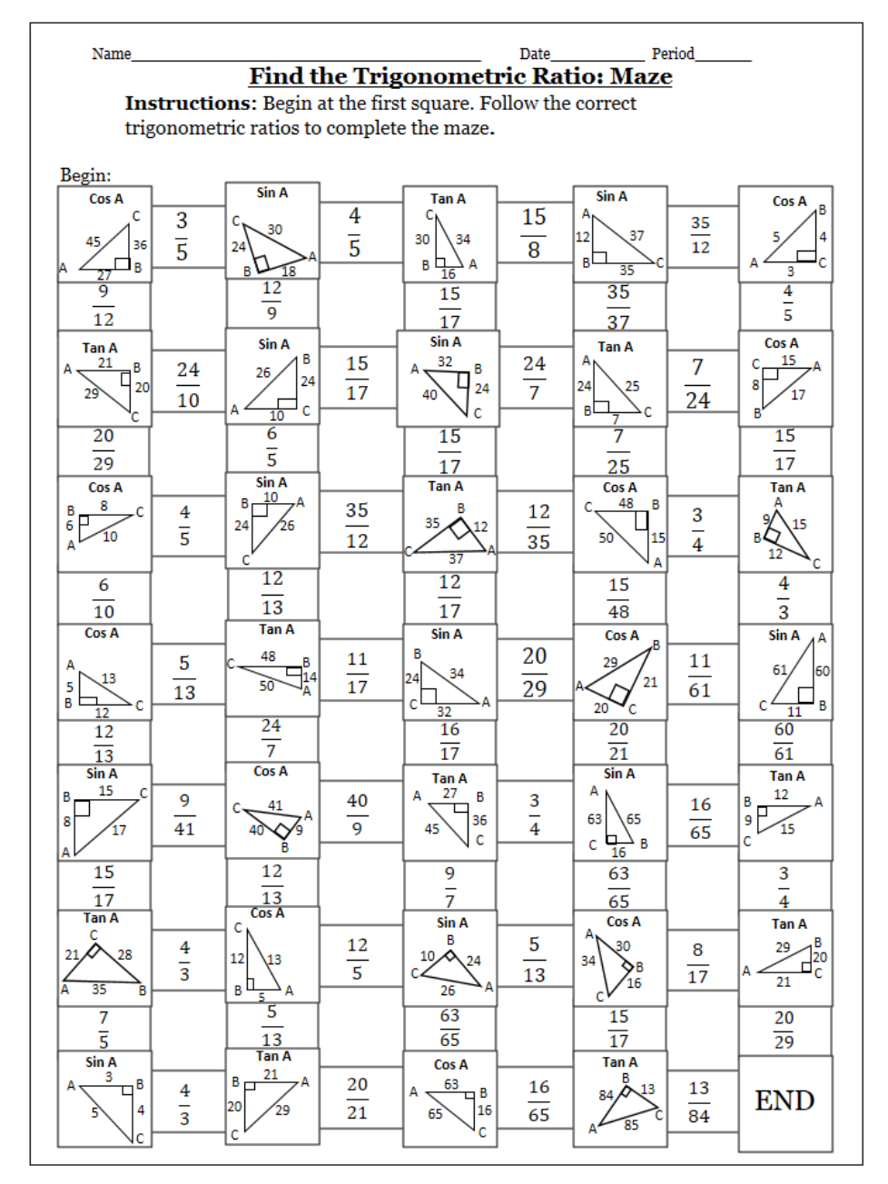 Trigonometry Ratio Maze