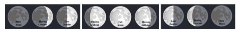 - Draw the correct Moon Phase (view from Earth) for each of the Moon Phases below
