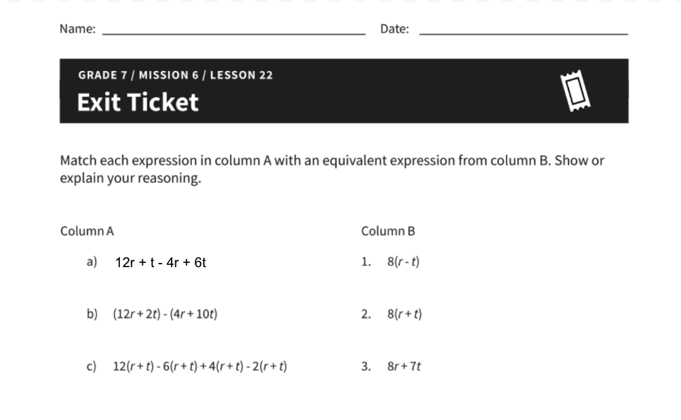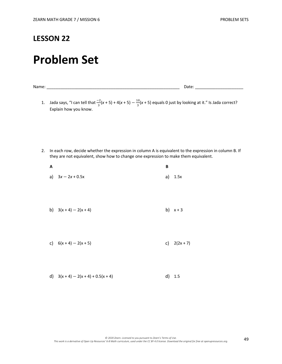 2. In each row, decide whether the expression in column A is equivalent to the expression in column B.