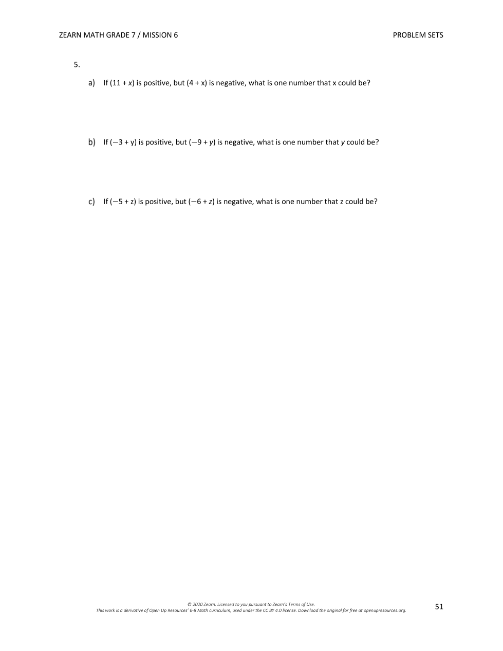 5c. If (-5+z) is positive, but (-6+z) is negative, what is one number that z could be?